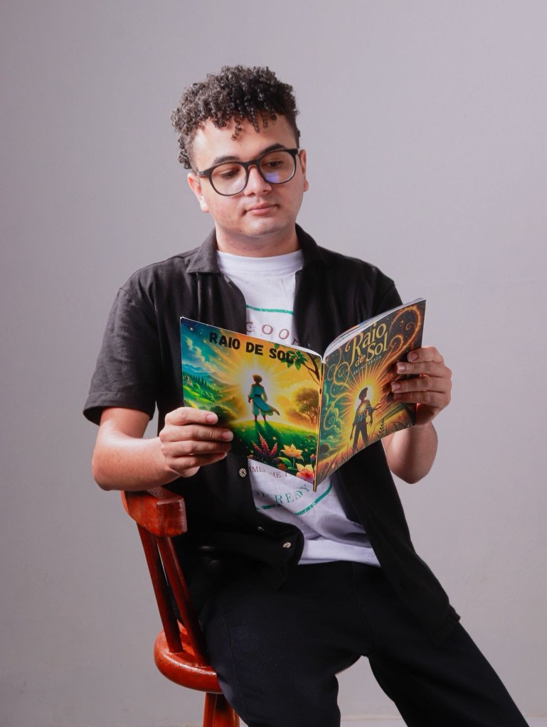 Depois veio Raio de Sol, minha primeira obra infantil — que, ironicamente, nasceu de um período muito escuro da minha vida. Porque às vezes a gente escreve luz justamente quando mais precisa dela.